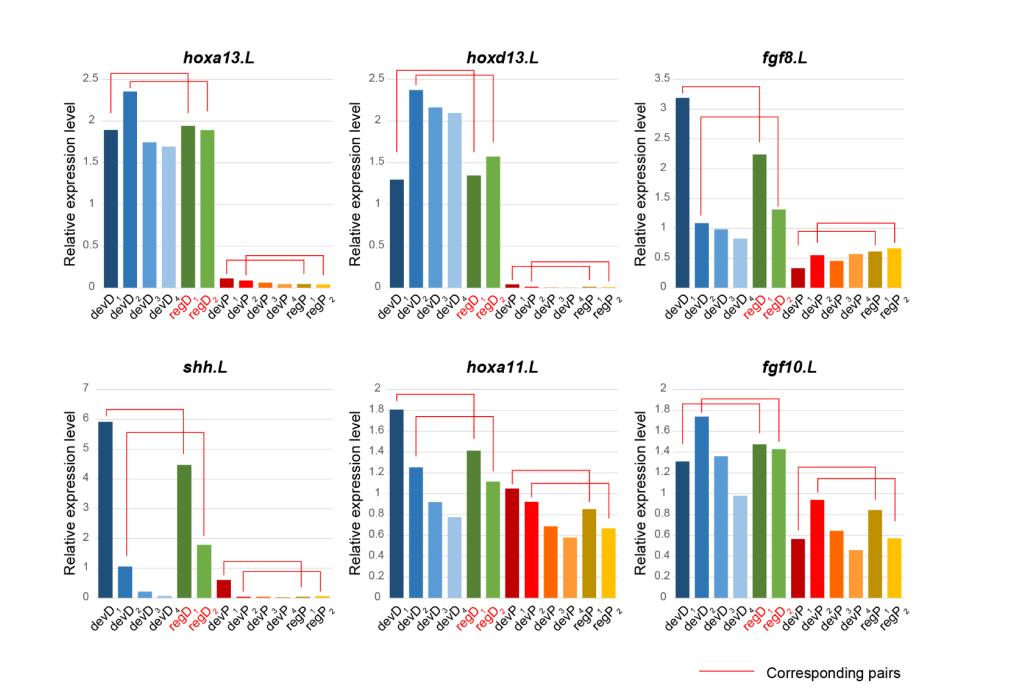 hoxc12/c13 as key regulators for rebooting the developmental program in Xenopus limb regeneration.