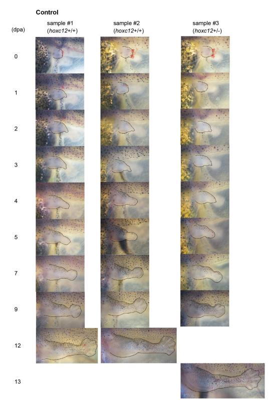Fig. S6. Time course of regenerating limb blastema in hoxc12 -/- individuals |