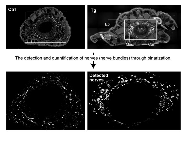 Fig. S13. Image analysis for detecting nerves (acetylated tubulin signal). |