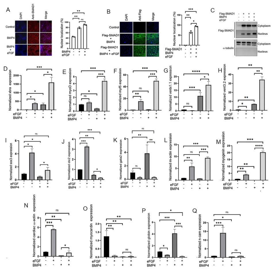 Genes referenced: bmp4 fgf4 myc smad1 smad4 tbxt