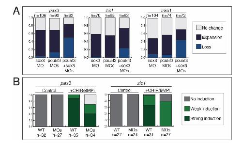 triple morphants (B) Stacked bar graphs with the percent of neural plate border-induced