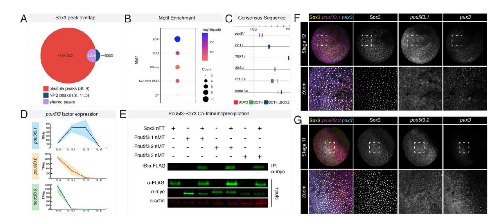 explants (stage 17). (E) Co-immunoprecipitation of Sox3 with Pou5f3.1, Pou5f3.2,
