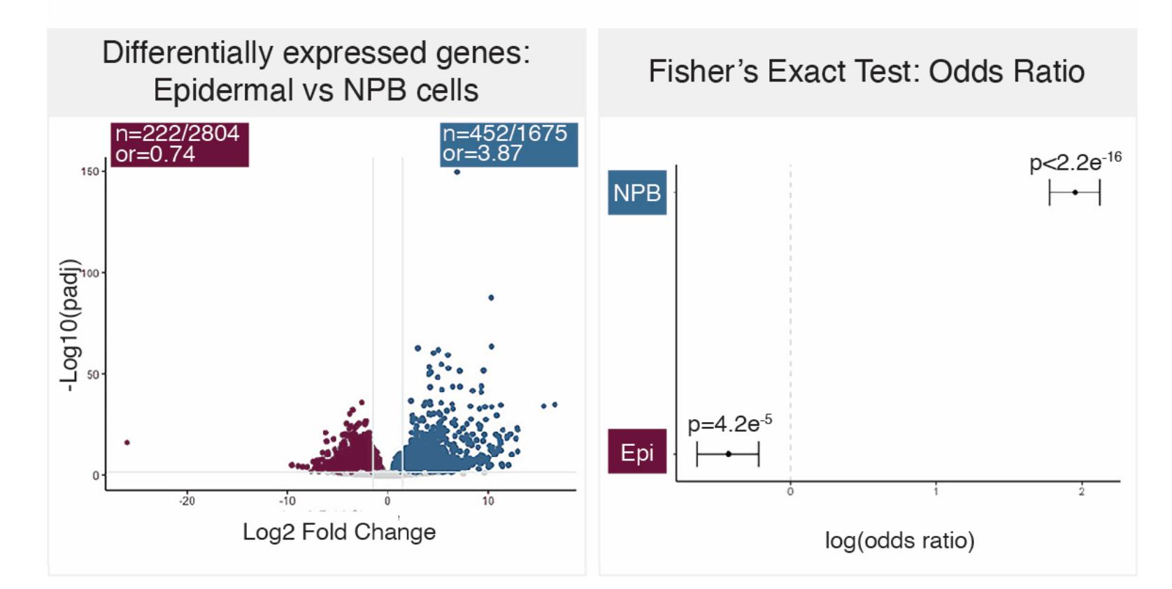 (epidermal vs neural plate border) in relation to Sox3 binding in neural plate borderinduced explants (St. 11.5). Odds ratio (or); neural plate border (NPB), epidermis (Epi) |
