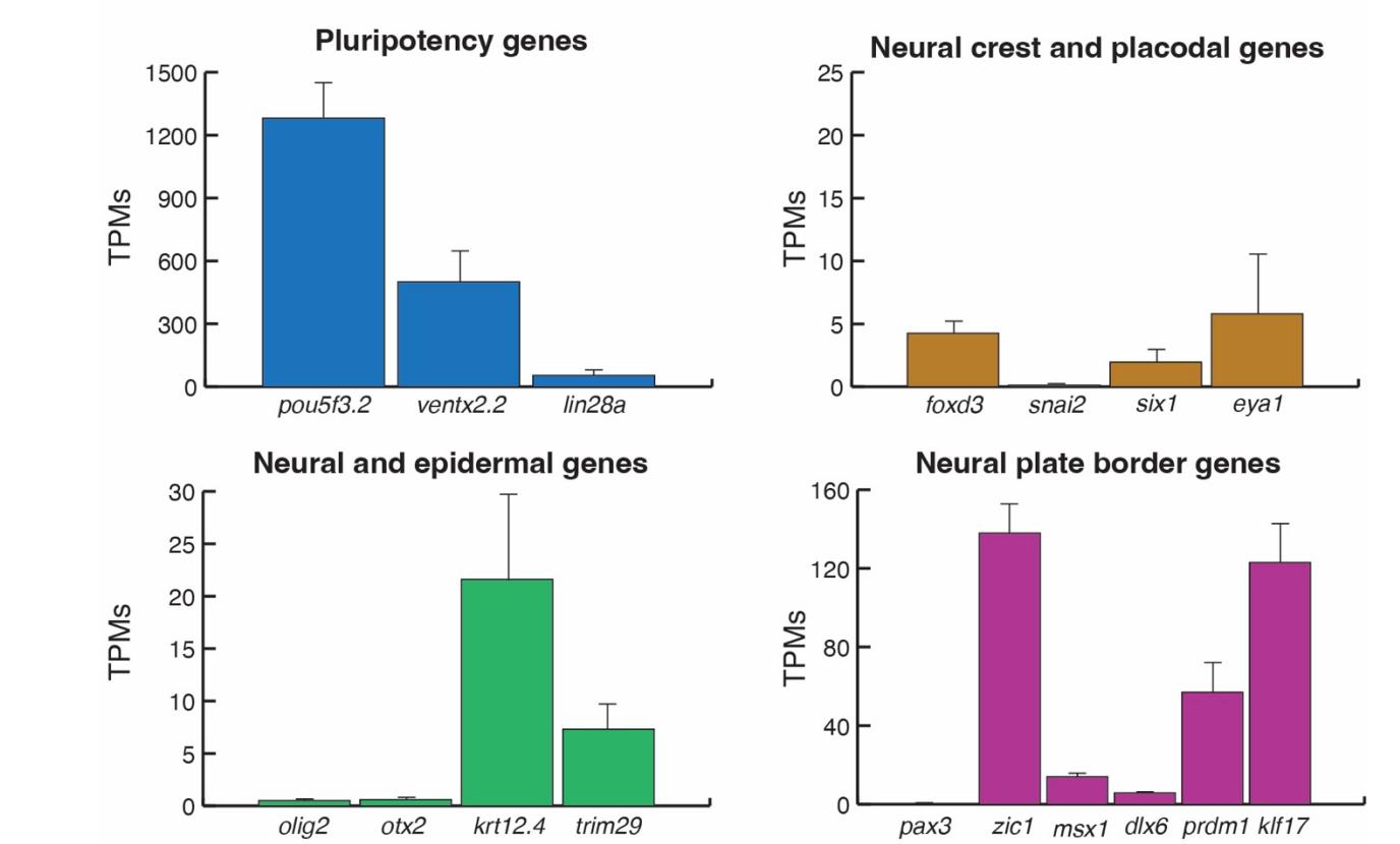 genes (pou5f3.2, ventx2.2 and lin28a), neural crest genes (foxd3 and snai2), placodal