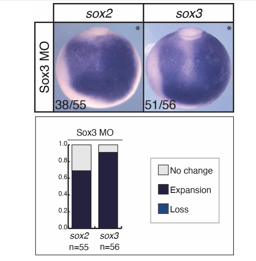embryos with changes in gene expression (loss, expansion, no change) for sox3