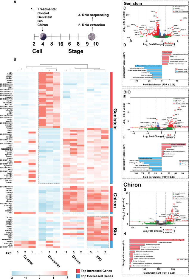 (A) Experimental design. Xenopus embryos were treated with different drugs at the 4-cell stage. Total RNA was extracted at the 9.5 stage and used