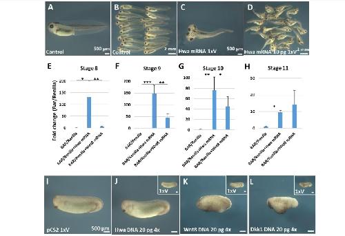cement gland and bellies for 4 x Dkk1 DNA injection. Scale bars: 500 µm. |