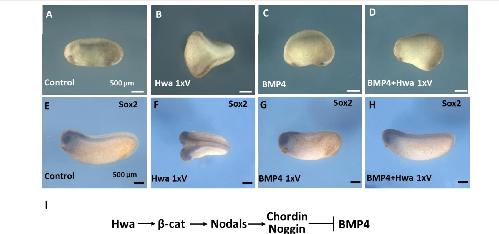 Hwa axis. (E-H) In situ hybridizations of Sox2 for control, Hwa, xBMP4 and coinjection