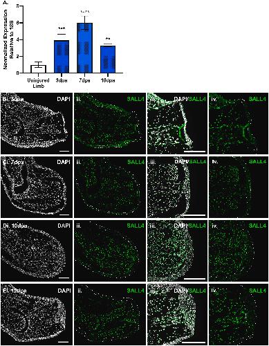 Sall4 regulates downstream patterning genes during limb regeneration.