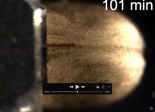 STILL FROM MOVIE S1. Repeated indentations of the neural plate. Dorsal view of an embryo during repeated indentations of the neural plate; anterior is to the left. Elapsed time (min) is shown at the top right. A snapshot of this process is shown in Figure 1c. |