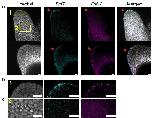 Supplementary Fig. 11 | AER-specific Fgf expression in developing axolotl limbs. a) Max-projection confocal image of axolotl Stage 53 hindlimb buds stained for Fgf7 and Fgf18 mRNA via HCR. Gray, Hoechst; Cyan, Fgf7; Magenta, Fgf18 mRNA; Scale bars: (Top) 100 μm and (Bottom) 20 μm. The red arrow indicates the target signals. b) Zoomed region of (a) indicated by yellow box number 1 shows the target signals. Scale bars: 20 μm. c) Zoomed region of (a) indicated by yellow box number 2 shows high background signals. Scale bars: 20 μm. |
