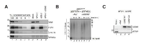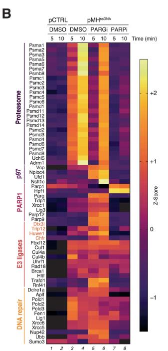 Genes referenced: adrm1 anapc15 aplf atm aunip brca1 btaf1 cab39 ccnc cdc25b chek1 chfr chtf8 ctrl cul1 cul4a cul4b cyb5r4 dbf4 dclre1a ddi2 ddx11 drap1 dscc1 dtx3l eme1 esco1 fancm fbxl12 fen1 foxm1 fzr1 hira hltf hpf1 huwe1 kdm8 lig1 lig3 mus81 naa30 nbn nsfl1c nup42 otud5 parg parp1 parp12.3 parp9 paxip1 pds5b pnkp pold1 pold2 pold3 pole3 pole4 psma1 psma2 psma3 psma5 psma6 psma7 psmc1 psmc2 psmc3 psmc4 psmc5 psmc6 psmd11 psmd12 psmd13 psmd14 psmd2 psmd3 psmd4 psmd6 psmd7 psmd8 rad18 rad51d rad54l rnaseh2a rnf41 rnf8 rprd1b scai sfr1 smarcd1 sprtn stag2 sumo3 tdp1 tiprl top1 trafd1 trip12 uba3 ubb uchl5 ufd1 uhrf1 usp2 usp37 vcp xrcc1 xrcc5 xrcc6