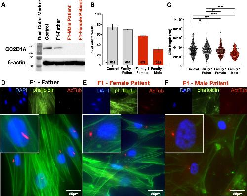 Figure 5.Cultured fibroblast cells of patients demonstrate ciliary defects.
