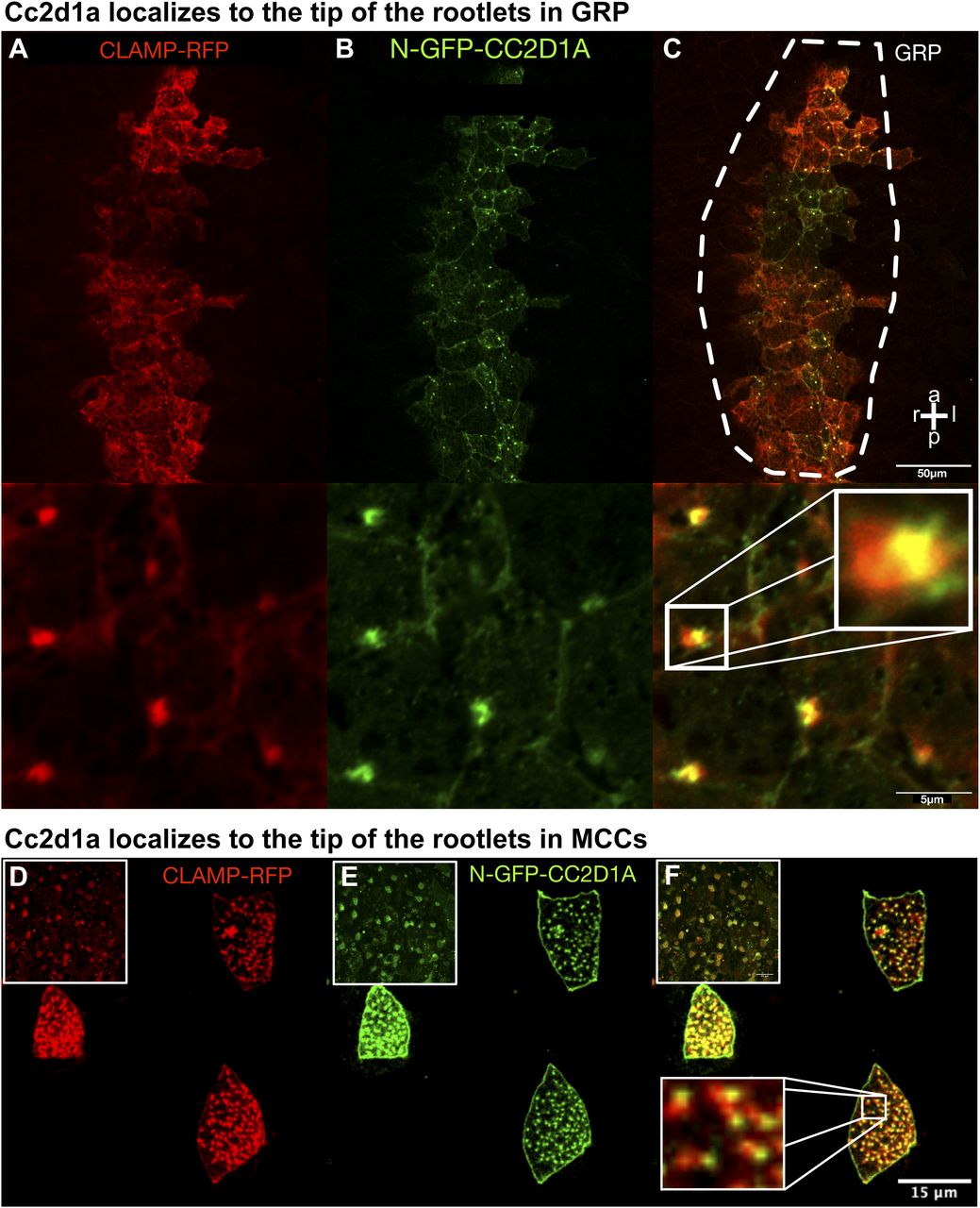 Figure S3.cc2d1a localizes to the top of the rootlets in GRP and MCCs.