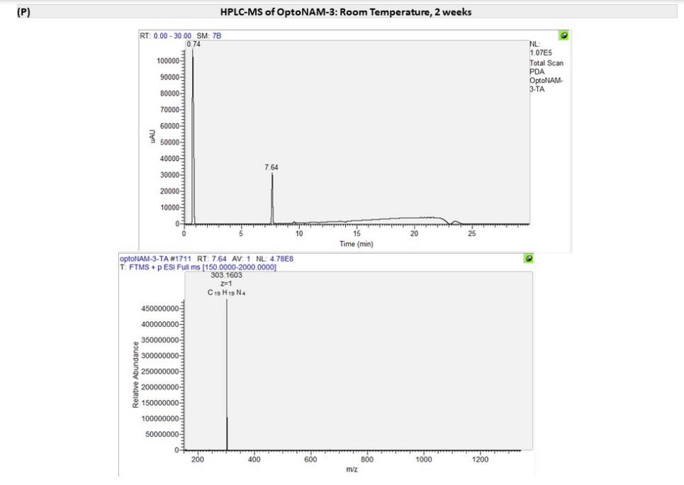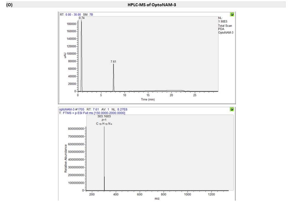 Scheme 1. Synthesis of OptoNAM-1 to OptoNAM-4aa aReagents and conditions: (a) nitrobenzene, 5 M NaOHaq in toluene, 50 °C for 3 h and then 80 °C for 12 h, 72–80%; (b) DPPA, Et3N, tBuOH in toluene, 75 °C for 3 h and then 100 °C for 12 h, 70–75%; (c) 6 M HClaq, MeOH, RT for 16 h, 47–51%; (d) SOCl2, MeOH, reflux for 16 h, 91%; (e) TMSBr, propionitrile, reflux for 4 h, 99%; (f) benzophenone imine, Cs2CO3, toluene, Pd2(dba)3, and BINAP, 90 °C for 12 h, 47%; (g) 4-aminopyridine, DCC, THF, RT for 16 h, 68%; (h) borane dimethyl sulfide, RT for 2 h and then 65 °C for 3 h, 59%; (i) Boc2O, DMAP, THF, 65 °C for 3 h, 100%; (j) 10% Pd/C and H2, RT for 16 h, 100%; (k) nitrobenzene, AcOH, RT for 8 h, 70%; (l) methyl chloroformate, Et3N, DMF, 20 °C for 4 h, 44%; (m) pyridine, CH3SO2Cl, CH2Cl2, RT for 16 h, 95%; (n) MeOH, 4 M HCl in dioxane, RT for 12 h, 100%; (o) KOAc, glacial acetic acid, nitrobenzene, RT for 8 h, 19%. The photochemical and biological characterizations of OptoNAM-1, OptoNAM-2, and OptoNAM-4 are described in Text S1, Figures S1 and S2, and Table S1. In brief, OptoNAM-1 and OptoNAM-2 displayed photodependent activity on GluN1/GluN2B NMDARs but with a > 1000-fold shift in IC50 compared to their parent compounds (Figure S1 and Table S1). This is likely due to the loss of protonation of the aminopyridine moiety at physiological pH induced by the introduction of the azo moiety (Figure S2). Protonation was indeed shown to be critical for the activity of this class of compounds onto GluN1/GluN2B NMDARs (39) (Figure S2G). OptoNAM-4, on the other hand, retained strong potency for GluN1/GluN2B NMDARs, but its activity was not photodependent (Figure S1 and Table S1). In this paper, we focus on OptoNAM-3 (Figures 1 and 2A), which emerged as the best candidate for efficient photocontrol of GluN1/GluN2B NMDARs (see below). |