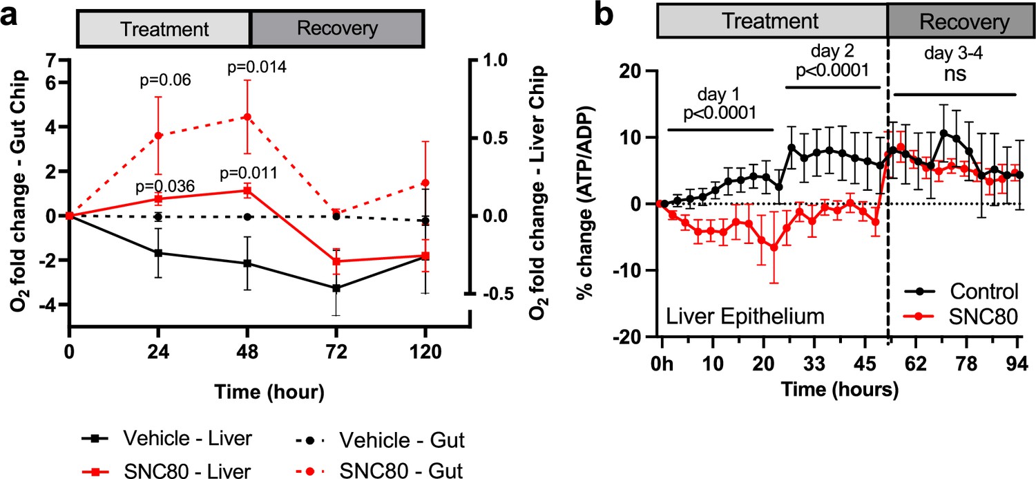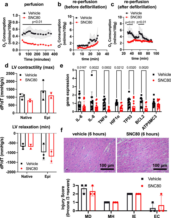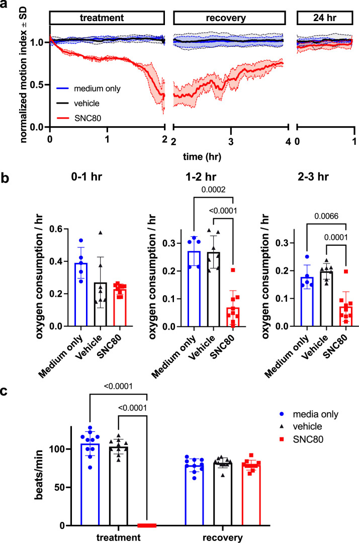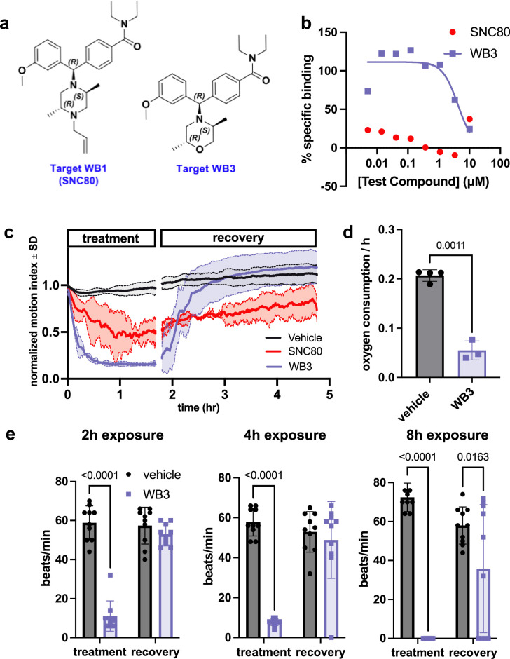 Drugs that induce reversible slowing of metabolic and physiological processes would have great value for organ preservation, especially for organs with high susceptibility to hypoxia-reperfusion injury, such as the heart. Using whole-organism screening of metabolism, mobility, and development in Xenopus, we identified an existing drug, SNC80, that rapidly and reversibly slows biochemical and metabolic activities while preserving cell and tissue viability. Although SNC80 was developed as a delta opioid receptor activator, we discovered that its ability to slow metabolism is independent of its opioid modulating activity as a novel SNC80 analog (WB3) with almost 1000 times less delta opioid receptor binding activity is equally active. Metabolic suppression was also achieved using SNC80 in microfluidic human organs-on-chips, as well as in explanted whole porcine hearts and limbs, demonstrating the cross-species relevance of this approach and potential clinical relevance for surgical transplantation. Pharmacological induction of physiological slowing in combination with organ perfusion transport systems may offer a new therapeutic approach for tissue and organ preservation for transplantation, trauma management, and enhancing patient survival in remote and low-resource locations.