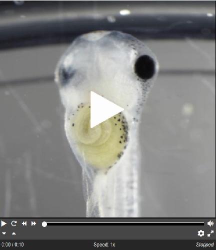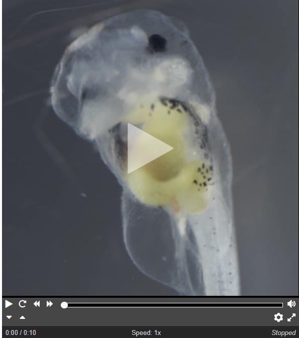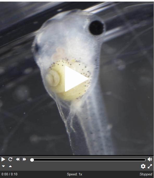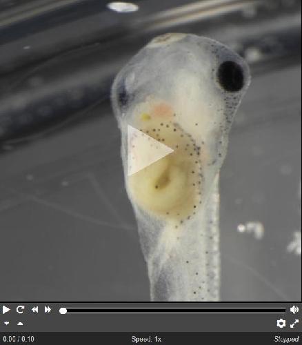 Video S4. X. laevis tadpole presenting heterotaxy. MO-2 injected embryo in Figure S2D, which displays a heterotaxy phenotype (abnormal gut with absence of gallbladder). |
