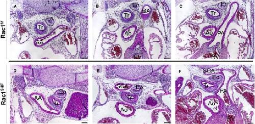 SHF hearts joined with the PA, forming a vascular ring (F) in Rac1