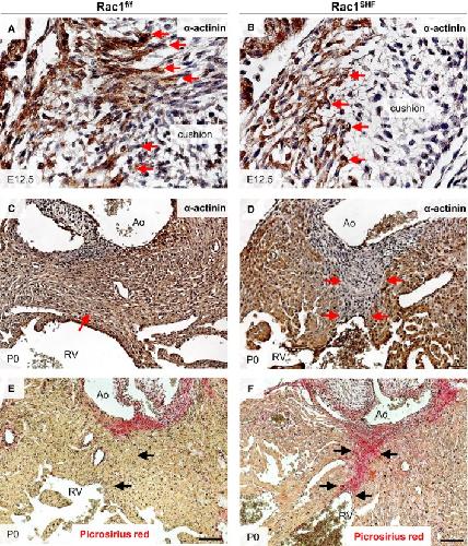 SHF and littermate valve leaflets (C and D). Masson's trichrome staining in Rac1