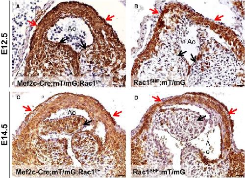 SHF hearts (K and L). Aortic atresia was observed in Rac1