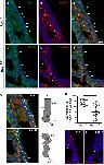 SHF SHF progenitors in which the Scribble‐positive basal domains (E, arrows) and aPKCζ‐positive apical domains (D, arrowheads) of individual cells are no longer aligned with neighboring cells due to the rounded morphology of the SHF progenitors (F). C, Overlay of panels A and B. F, Overlay of panels D and E. The angle of the E9.5 SHF progenitor cell long axis (dashed line) was measured relative to the axis of the dorsal pericardial wall (dashed arrow line) to obtain the degree of orientation (G). Images in panel G are from panels C and F with an overlay of schematic axis and angle measurements. H, The angle of each SHF progenitor cell in the splanchnic mesoderm was measured and plotted. *P<0.05 by Mann–Whitney test, n=4 embryos per group. Each data point represents 1 SHF progenitor cell. Active (nonphosphorylated) β‐catenin marked cell–cell junctions in E9.5 Rac1
