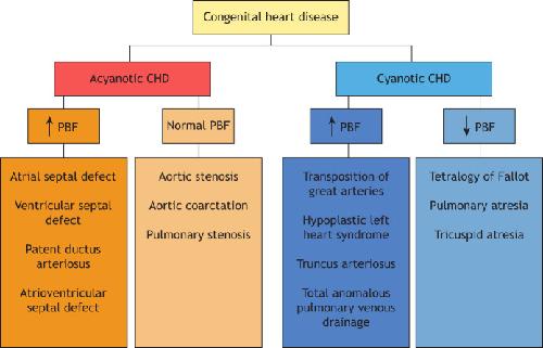 Fig. 2. Classification of CHD into acyanotic and cyanotic CHD, and the status of pulmonary blood flow (PBF).
