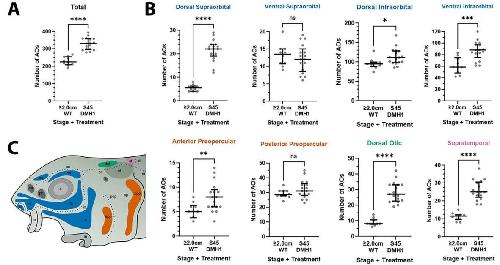 significant, P>0.05; *, P≤0.05; **, P≤0.01; ***, P≤0.001; ****, P≤0.0001). Dorsal supraorbital: