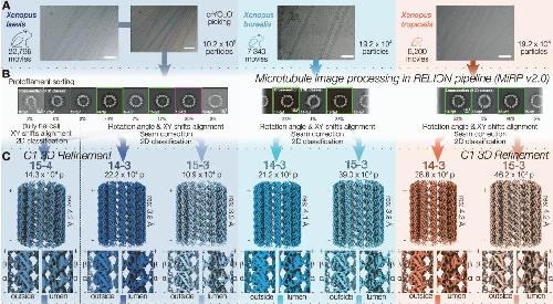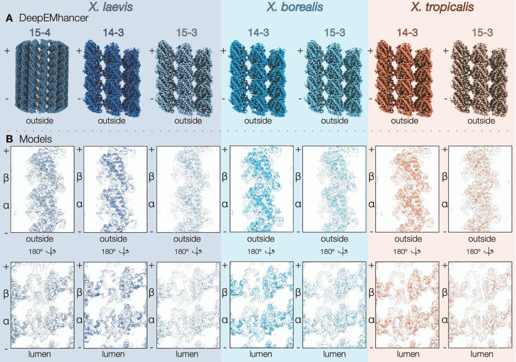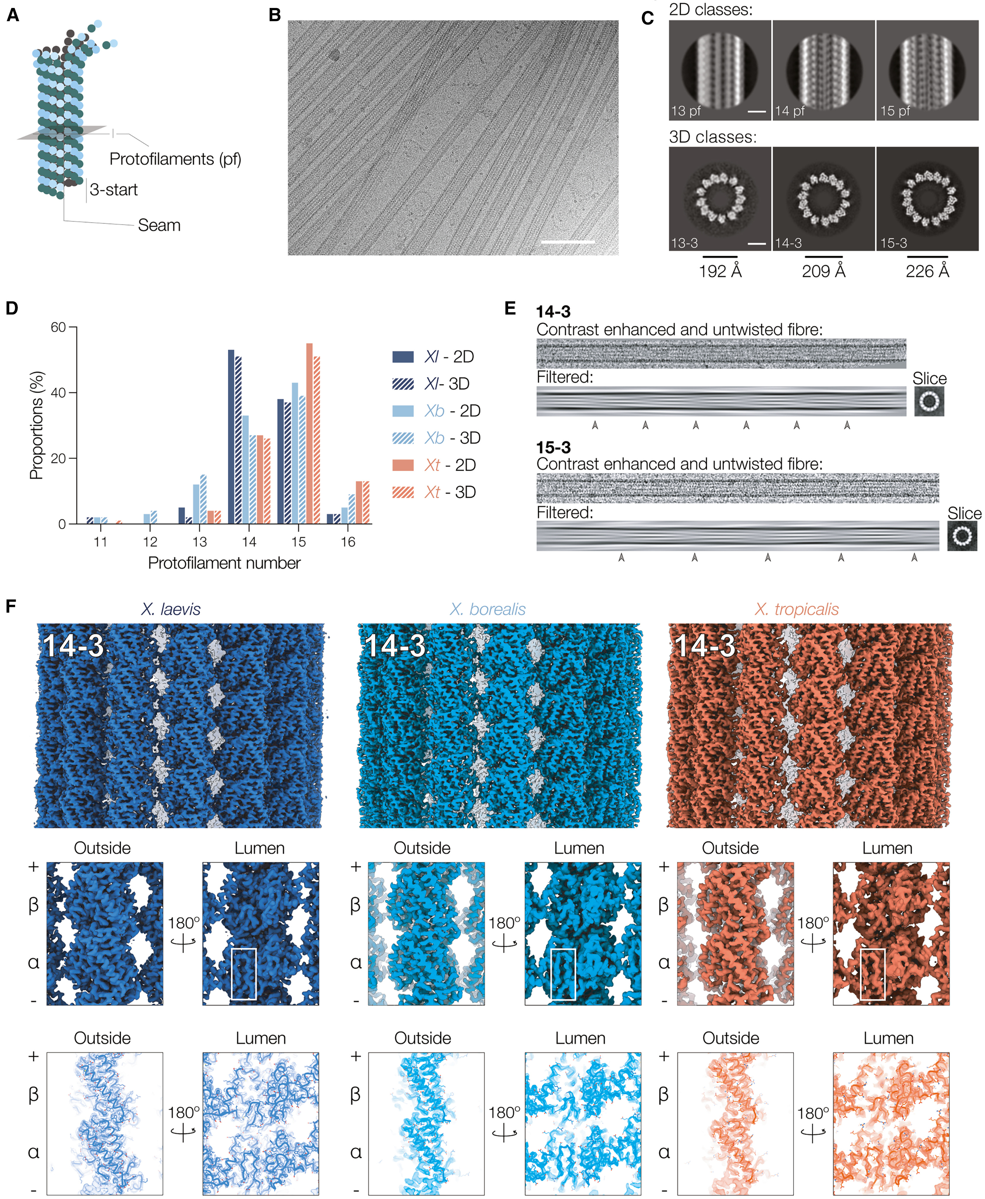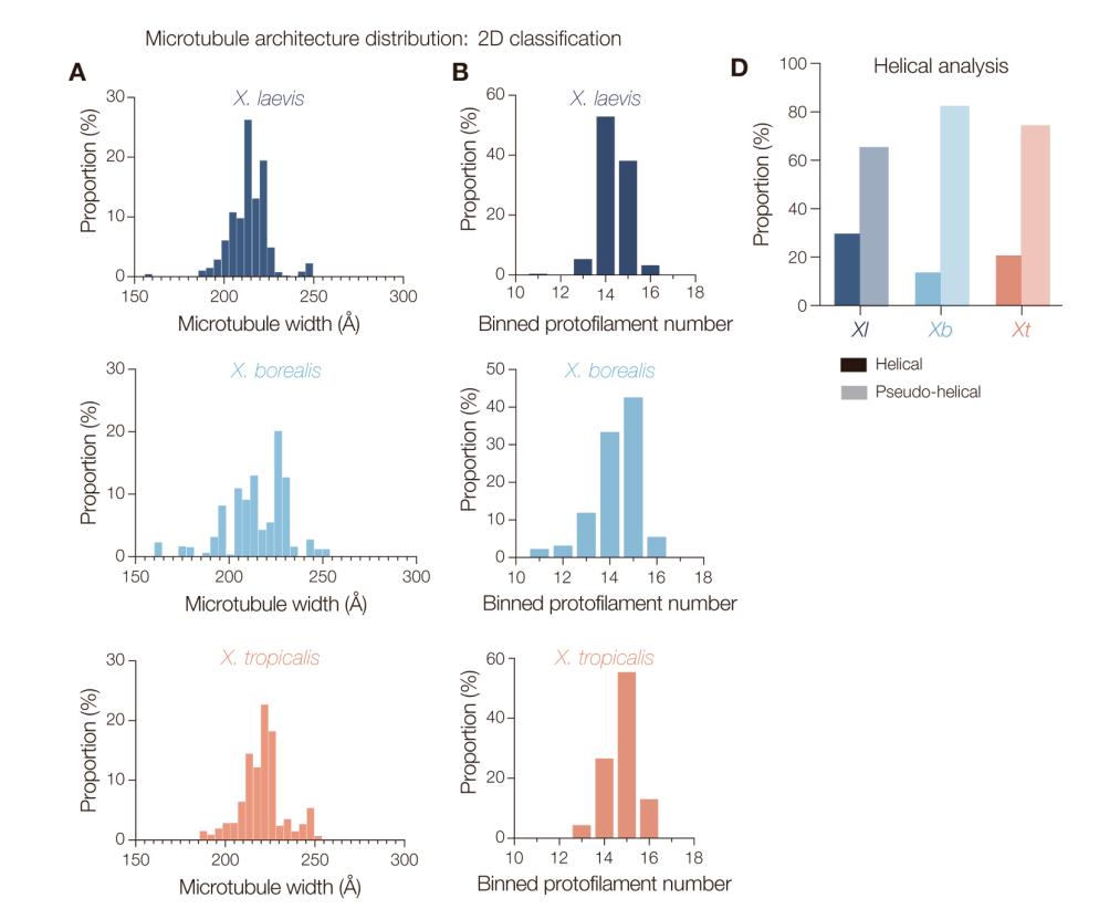 Figure 3. Cryo-EM analysis of microtubules from closely related Xenopus species