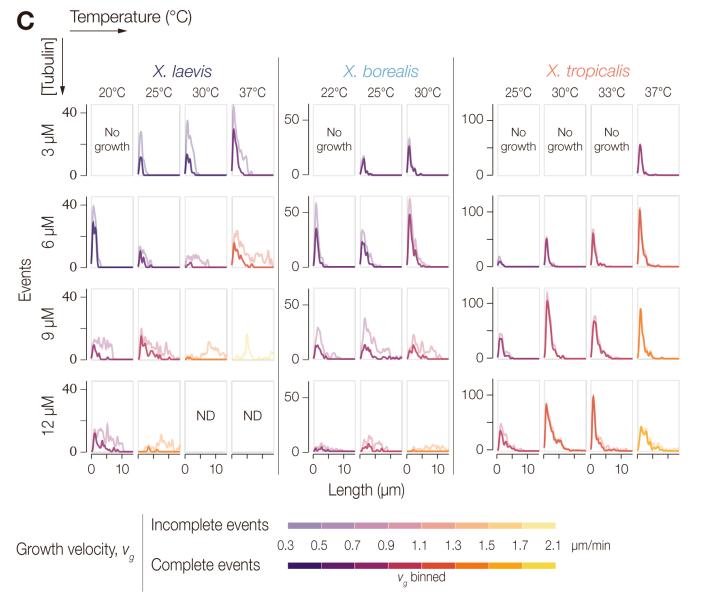 and incomplete (transparent) events and pooled per temperature, tubulin concentration,