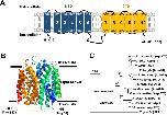 Fig. 1. Schematic representation of PvApiAT8. (A) The predicted topology of PvApiAT8 (1–572 aa.) full-length reveals 12 transmembrane segments, with a short intracellular N-terminus (1–38 aa.) and C-terminus (549–572 aa.). The number of transmembrane domains and corresponding amino acid positions are indicated in parentheses. (B) The tertiary structure of PvApiAT8 is shown from Arg 38 (N-terminus, shown in blue) to Phe 547 (C-terminus, shown in red). A long intracellular loop spanning residues (250–354 aa.) characterized by low accuracy in the predicted structure, is represented by a connecting line. The horizontal bars illustrate the expected lipid bilayer boundaries for the 12 transmembrane domains. (C) The phylogenetic tree of ApiAT8 in Plasmodium species and Toxoplasma gondii was constructed using the MEGA11 software with the maximum likelihood method and 1,000 pseudo-replications, showing the evolutionary relationships among these species.