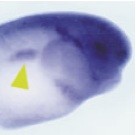 jag1 (jagged 1)gene expression in Xenopus laevis embryo via in situ hybridization, NF stage 32, lateral view, anterior right, dorsal up, head and trunk region only.