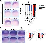 Fig. 4. miR427 expression levels at stage 8. (A) Northern blot showing relative levels of miR427 in comparison to total RNA amounts; miR427 OE and miR427 OE-P are positive overexpression controls. (B) qPCR quantification of miR427 expression levels using LNA probes for miR427 and u6 (small RNA standardization control). Three biological replicates were used for all experiments. All data represent results from experiments replicated at least three times in the laboratory. Statistical significance was determined using two-way ANOVA analysis. *P<0.05, **P<0.01. ns, not significant. Data are mean±s.d.