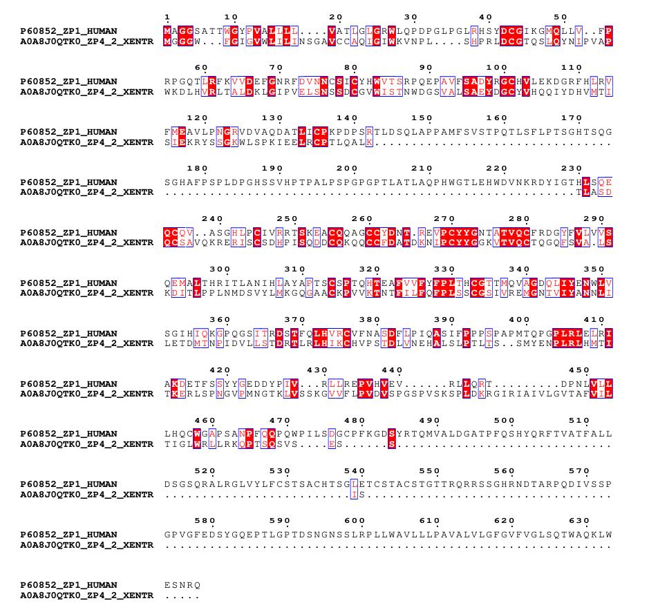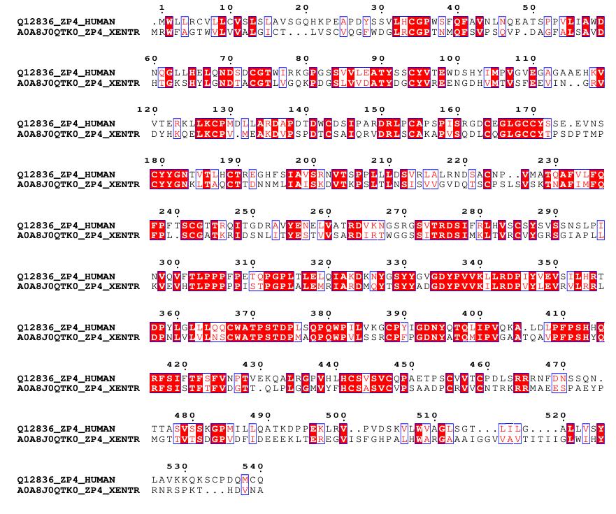 Supplementary Figure S9 The homology of zona pellucida proteins between Xenopus tropicalis and human oocytes was compared using data from the UniProt database.