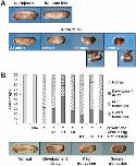 Fig. 3. XPofut1 knockdown causes axial truncation. (A) Indicated amounts of XPofut1 (2.5-10nmole/embryo) or control random MO (10nmole/embryo) were injected into the marginal regions at 2-cell stage and the embryos were cultured until stage 27. Photographs of representative embryos are shown. (B) Indicated combinations of XPofut1 or control random MO (cMO) (5nmole/embryo), Sec-hPOFUT1 or Sec-XPofut1 mRNA (ng/embryo) were coinjected into the marginal regions at 2-cell stage. The embryos were cultured until stage 27 and scored for phenotypes. Photographs of representative embryos for each category of phenotype are shown, and percentages of embryos to each category are tabulated. |