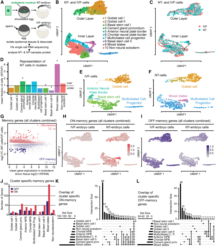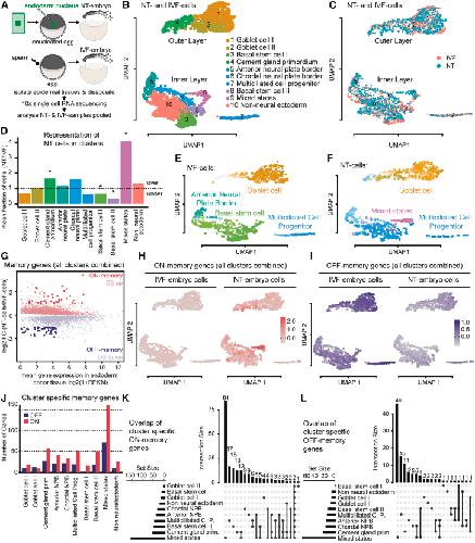 (L) UpSet plot showing the overlap of OFF-memory genes across cell types in NT embryos as described in (K). |
