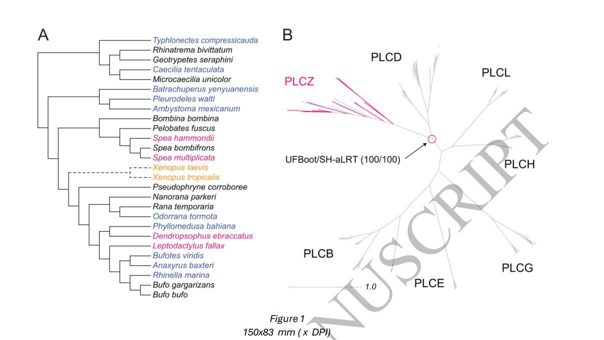 in amphibians. (A) Cladogram illustrating the occurrence of PLCZ1 orthologs in amphibian