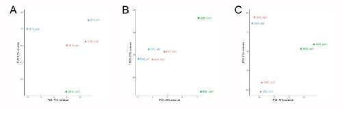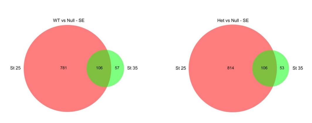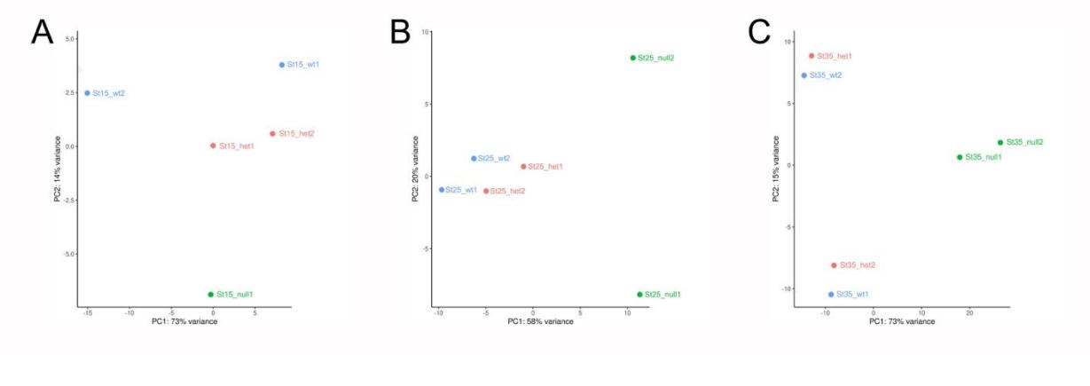 15 (A), stage 25 (B) and stage 35 (C) WT and Het samples are more similar to each other
