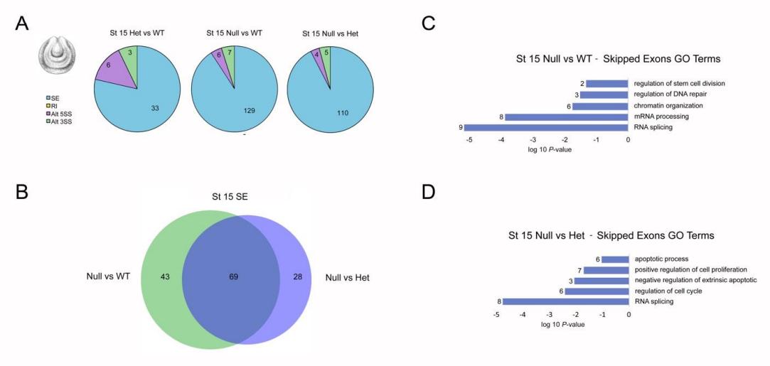 stage 15. (A) Pie charts showing the type and number of splicing events occurring for each