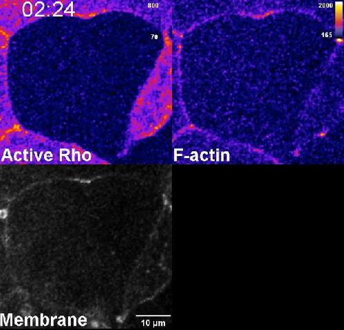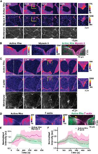 the field of view. The Active Rho, Myosin II, and F-actin intensities were normalized to the