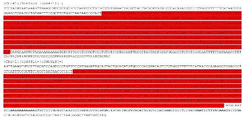 sequence of the transmembrane protein 111 (tmem111.S) gene. The highlighted red