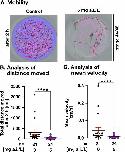 Fig. 6. Mobility of X. laevis embryos after a 14-day exposure to Tebucur. A. Mobility. Generated illustration showing the tracked mobility of X. laevis embryos at stage 44/45 after 2hours (control and 5mg a.i./L). B. Analysis of distance moved. Statistical analysis of embryos treated with control solution and 5mg a.i./L Tebucur investigating the distance moved during 2hours (N=2, n=2124). Exposure to 5mg a.i./L Tebucur led to a significant reduction in moving distance. C. Analysis of mean velocity. Statistical analysis of embryos treated with control solution and 5mg a.i./L Tebucur investigating the mean velocity during 2hours movement time (N=2, n=2124). Embryos exposed to Tebucur were significantly slower compared to the control. Abbreviations: cm: centimeter, cm/s: centimeter per second, mg a.i./L: milligram active ingredient (tebuconazole) per liter, n: number of evaluated embryos in total. |