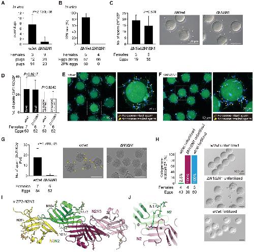(G) Sperm penetration assay. PVS, perivitelline space. Yellow arrowheads, sperm in the PVS.