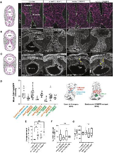 (E) Cdh1 immunostaining and confocal microscopy of NF44 transgenic embryos and controls. Scale bars, 50 um. |
