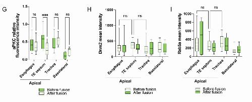 S2I: Quantification of Rab5a intensity after epithelial fusion (mean ± min/max, 2W-ANOVA, n=6 cells per embryo, N=5