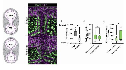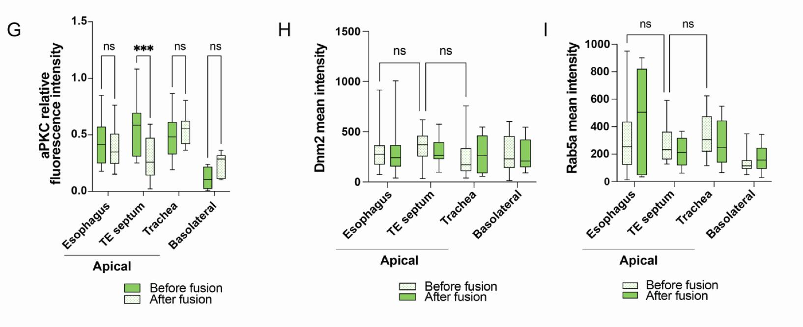 Figure 2. Dynamic endosome localization and epithelial remodeling during tracheoesophageal morphogenesis