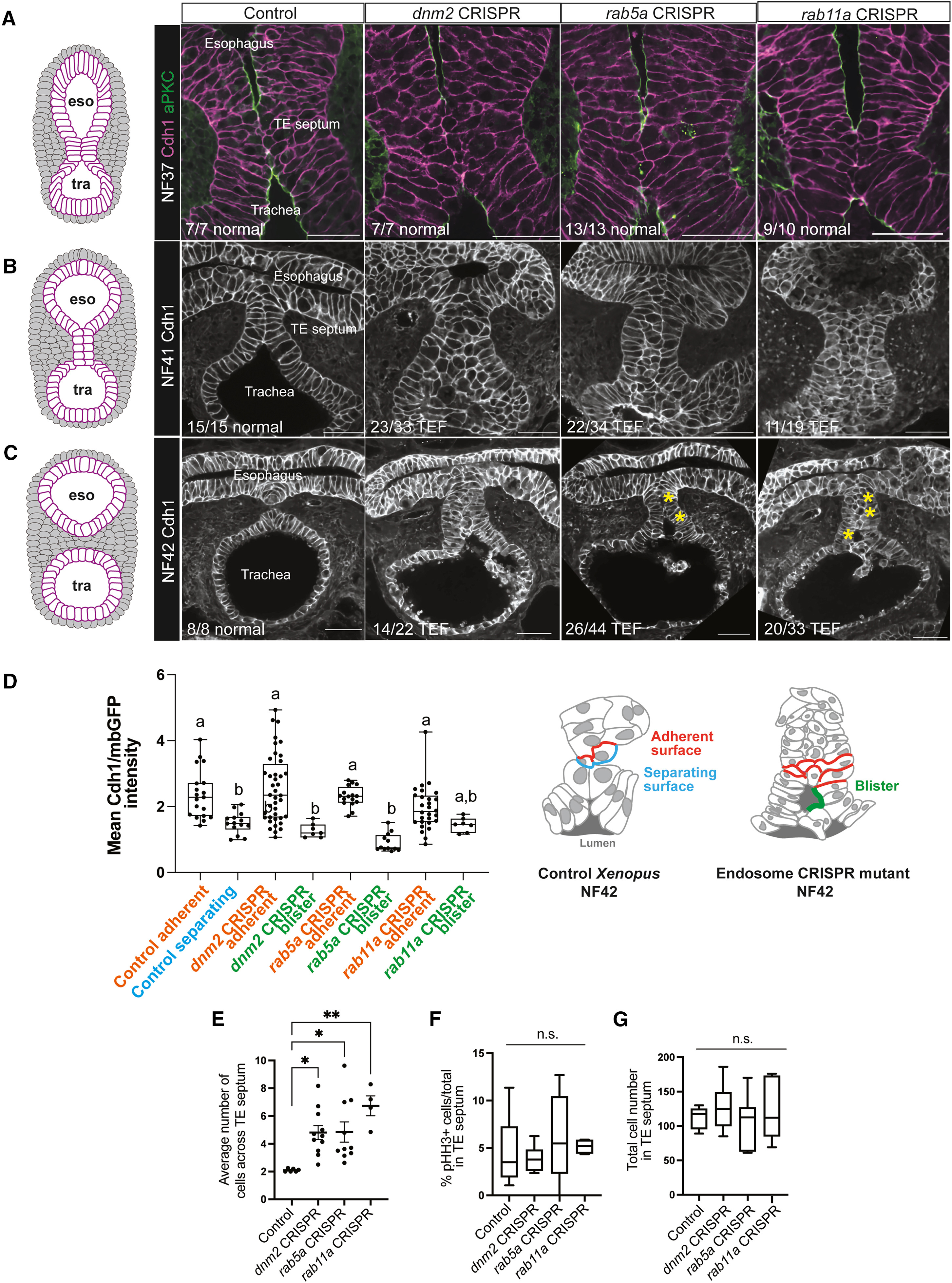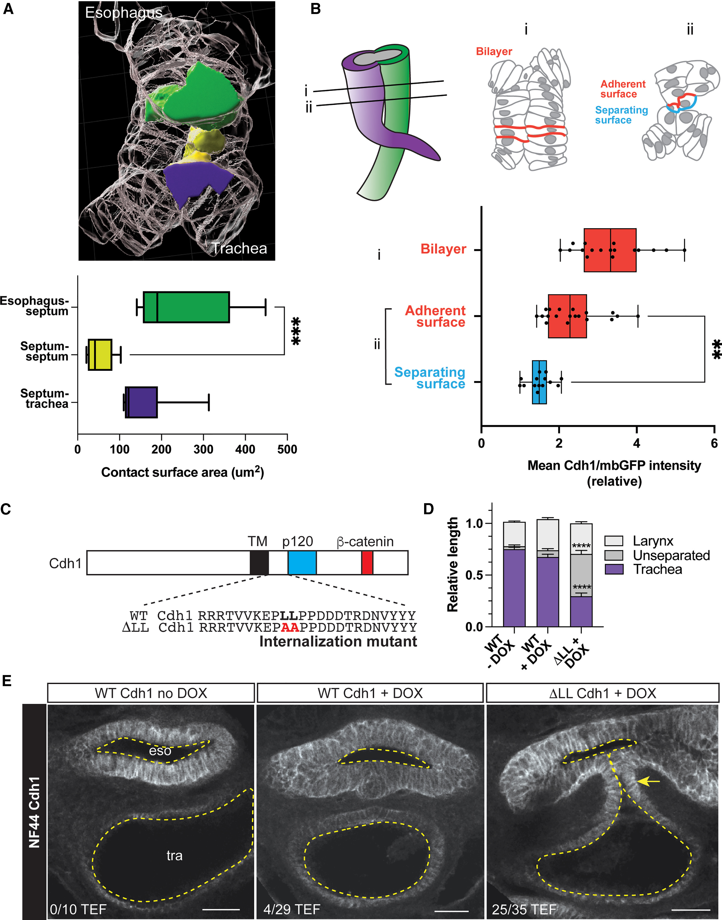 Figure 3. Endocytosis of Cdh1 is required for trachea-esophageal separation
