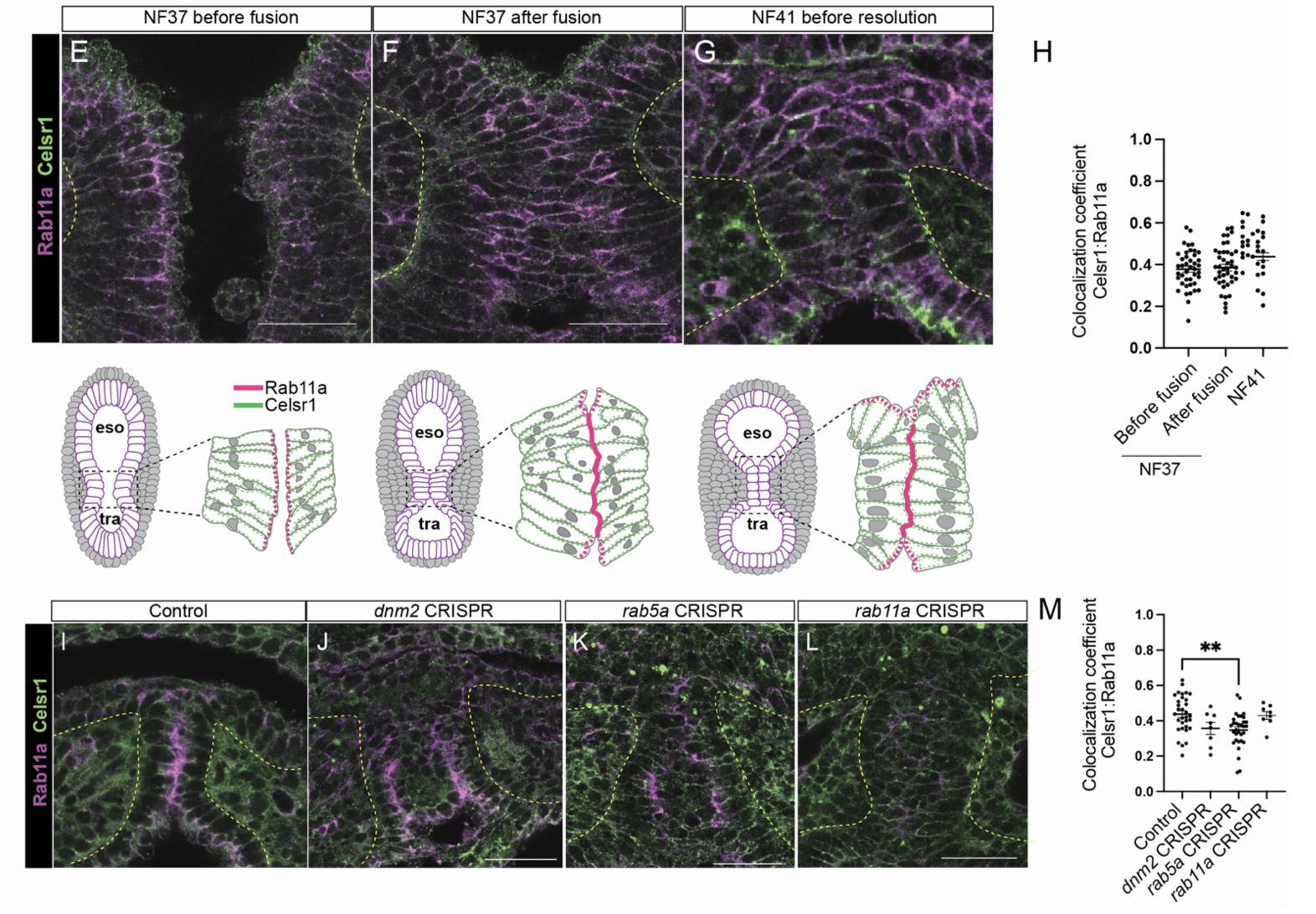 (FI) Diagrams of Vangl2-Rab11a localization during foregut separation.