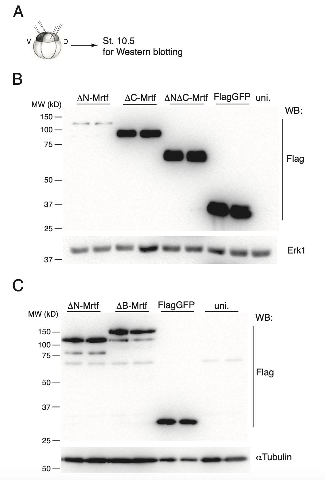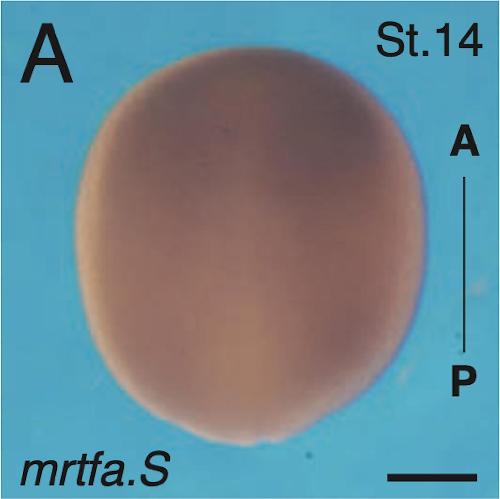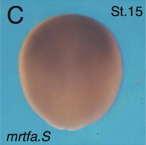 When control embryos reached stage 10.5, injected embryos were lysed for immunoblotting. B, Expression levels of Mrtf