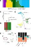 Fig. 1. Population structure of Xenopus laevis in South Africa. A- STRUCTURE analysis showing 4 main clusters (K = 4). Each vertical bar represents one individual, and the proportion of colour within each bar indicates the individual’s estimated ancestry to each genetic cluster. The left ladder marks the proportion scale. B- PCA of SNP data showing the first two principal components (PC1 and PC2), which accounts for 30.6% and 23.4% of the total genetic variation respectively. Each point represents an individual, and clustering patterns reflect genetic similarity. C- Maximum likelihood phylogeny. D- STRUCTURE analysis showing that the Great Karoo and south coastal populations are genetically distinct. E- PCA of SNP data based on the Great Karoo and south coastal populations showing PC1 and PC2, which accounts for 30% and 12.3% of the total genetic variation respectively. F- Proportion of fixed, shared and private SNPs among populations