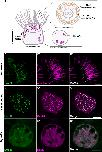 Fig. 1. Localization of GFP-Lrrc56 in Xenopus multiciliated cells. (A) Schematic of a vertebrate multiciliated cell (MCC). The upper inset shows a cross-section of an axoneme with the relative positions of outer dynein arms (ODAs) and inner dynein arms (IDAs). The bottom inset illustrates a representative cross-section of the MCC cytoplasm, highlighting dynein axonemal particles (DynAPs). (B,C,D) Representative in vivo confocal images showing GFP-Lrrc56 (green) localization along the length of ciliary axonemes, basal bodies and at cytosolic foci (DynAPs) in Xenopus MCCs. (B′,C′,D′) Membrane labeling with CAAX-RFP (magenta) marks motile cilia, Centrin-RFP (magenta) marks basal bodies, and mcherry-Dnai2 (magenta) labels DynAPs. (B″,C″,D″) Representative merged confocal images from the previous channels showing GFP-Lrrc56 (green) and the various markers (magenta). Scale bars: 10 µm. For this experiment, the sample size was n=9 per group/condition. The experiment was independently repeated at least three times with consistent results. |